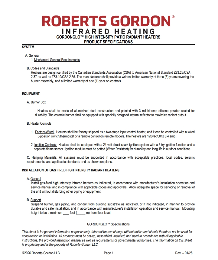 GordonGlo Elite Written Specification