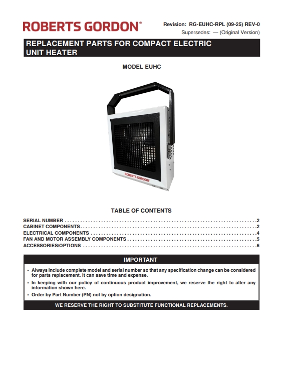 EUHC Replacement Parts List